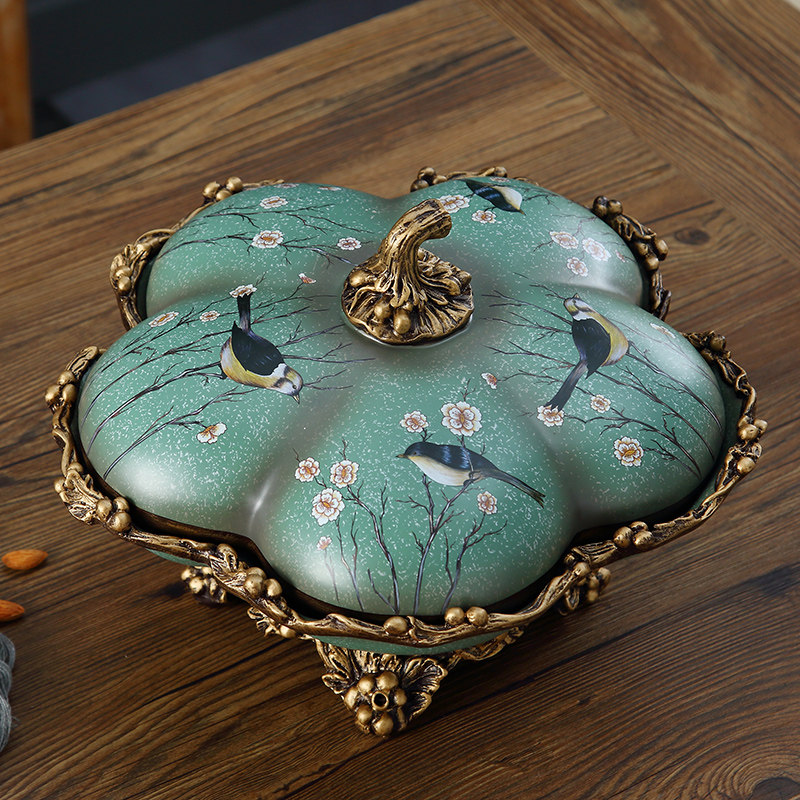 • 商品名称:欧式旋转过年干果盘分格带盖防尘糖果盘高档客厅茶几比翼双飞大盖六格干果盘装饰摆件
