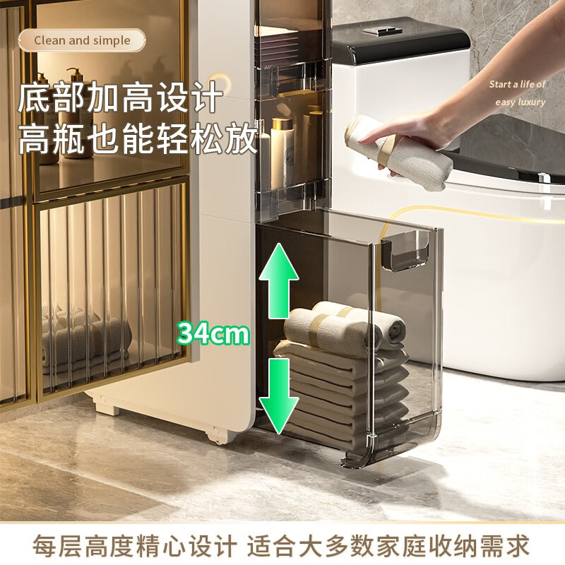 • 商品名称:卫生间置物架浴室落地夹缝收纳柜厕所马桶抽屉式储物柜边柜侧柜 夹缝收纳柜/三层