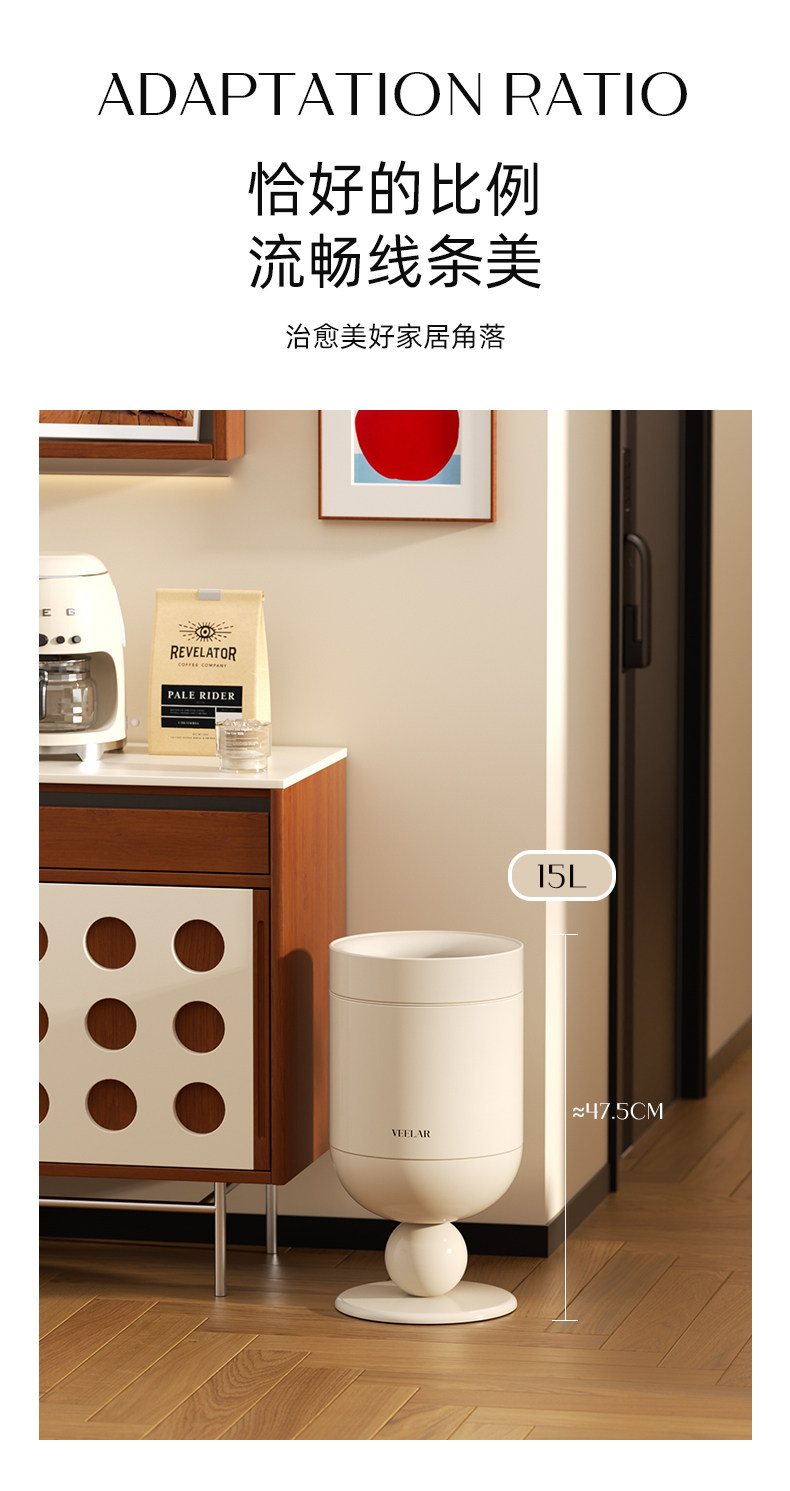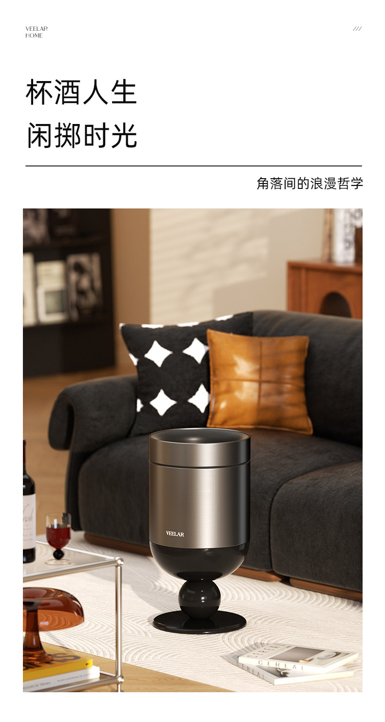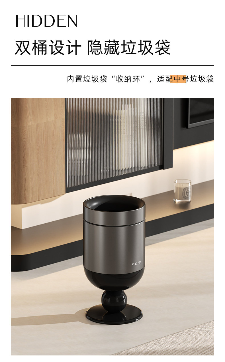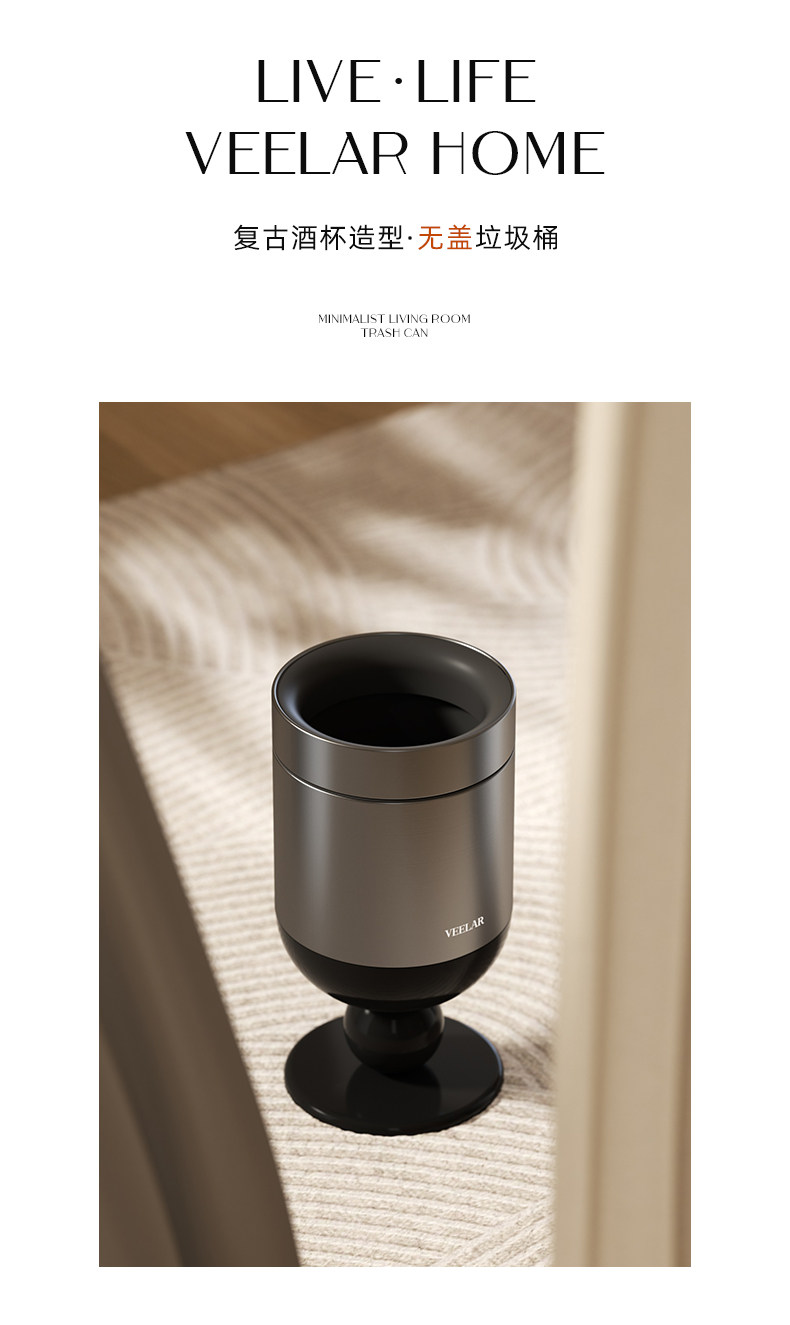 • 商品名称:无盖垃圾桶客厅高脚杯家用大容量高颜值中古风轻奢2025新款