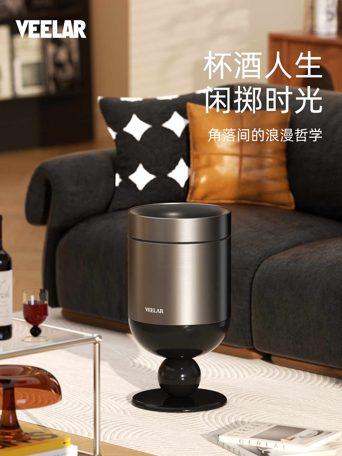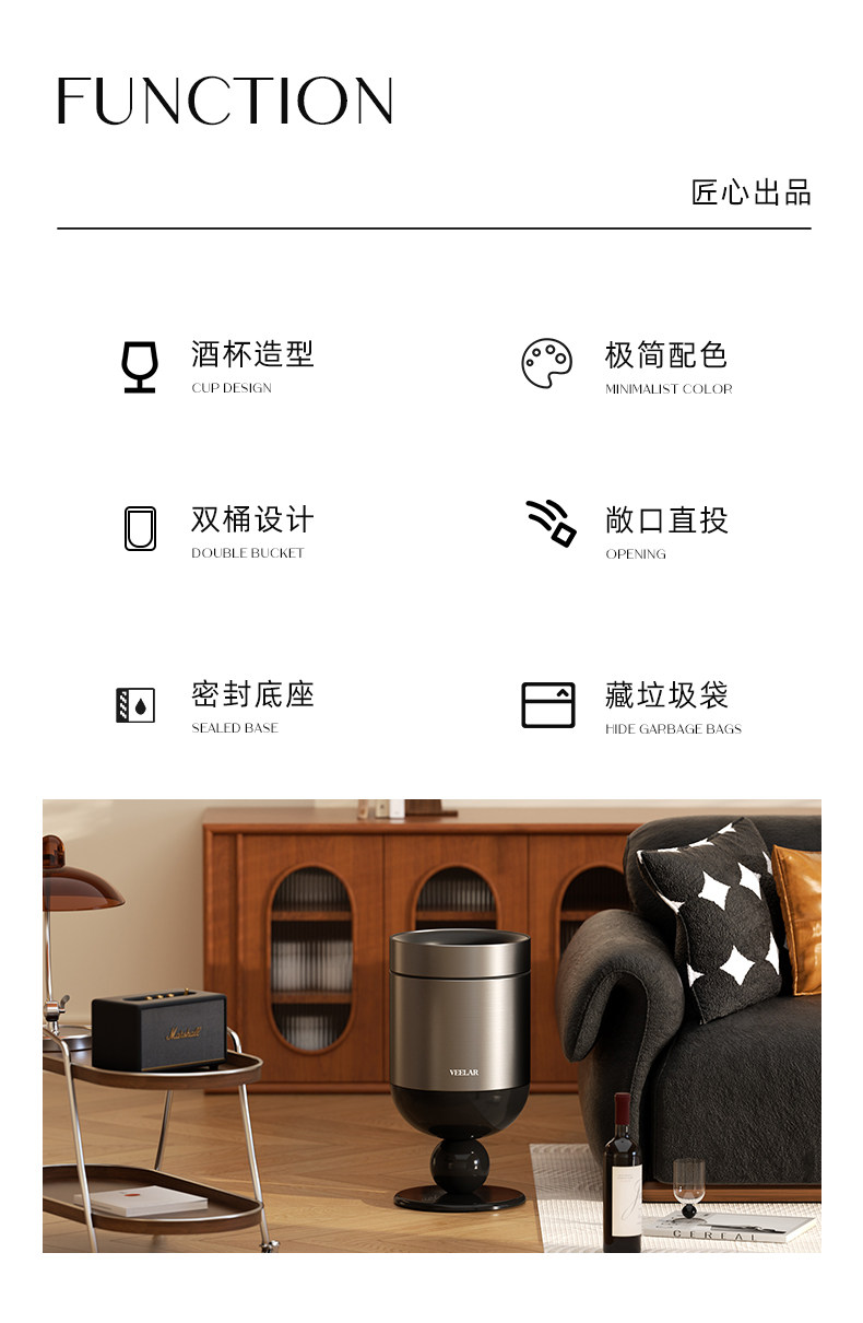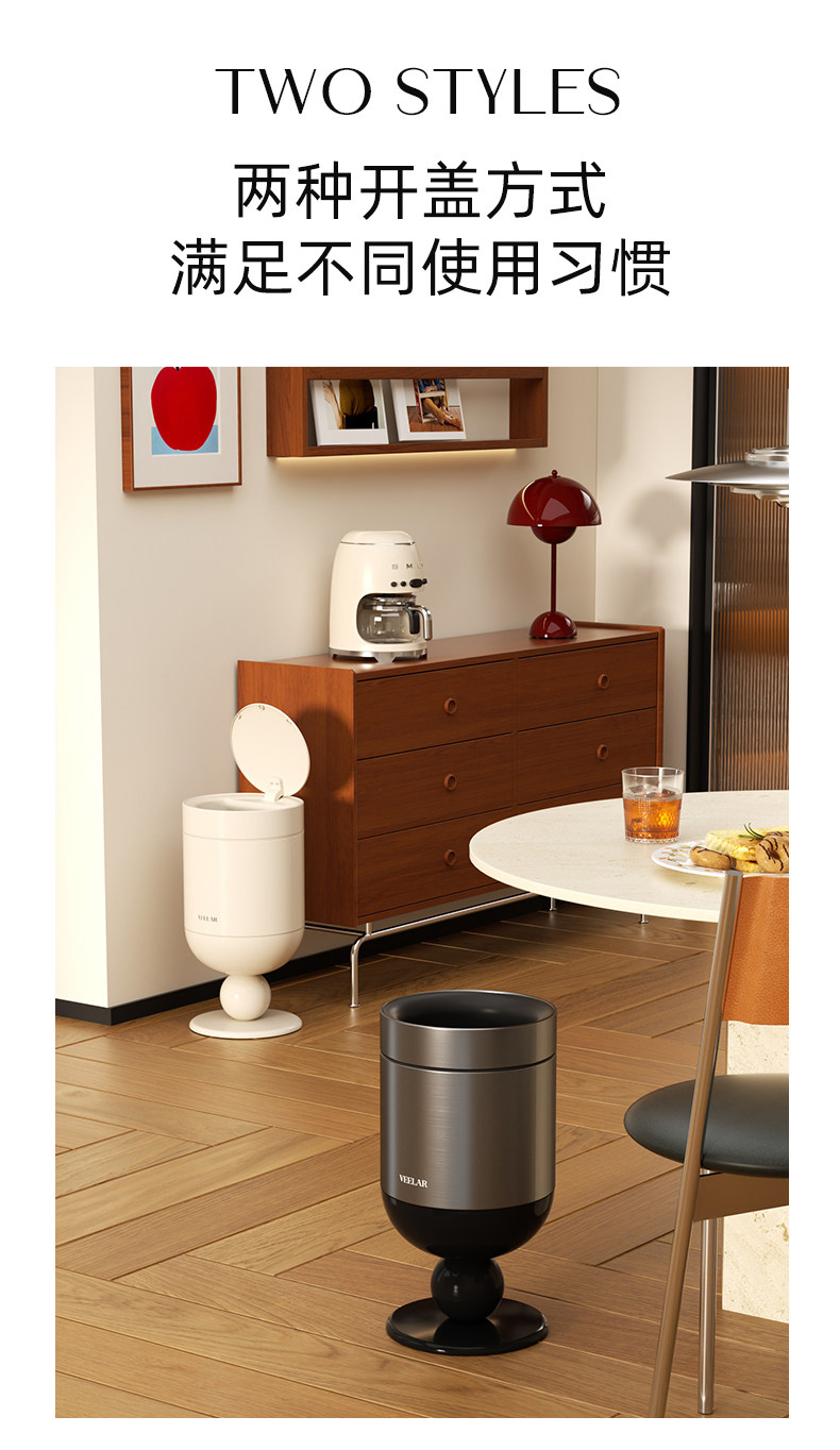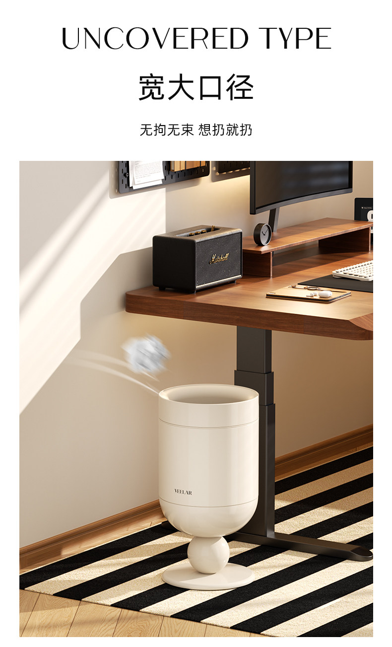 • 商品名称:无盖垃圾桶客厅高脚杯家用大容量高颜值中古风轻奢2025新款