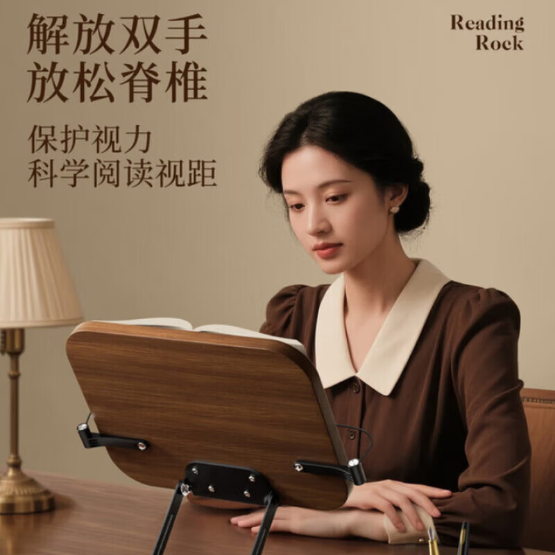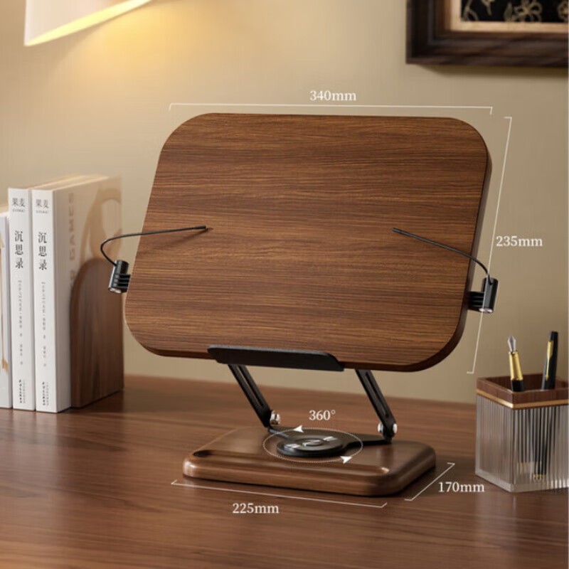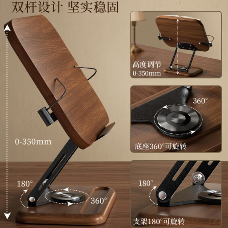 • 商品名称:木质旋转可升降阅读看书支架多功能读书实木阅读架固定书架 【木质底座】胡桃木色丨旋转款丨可升降