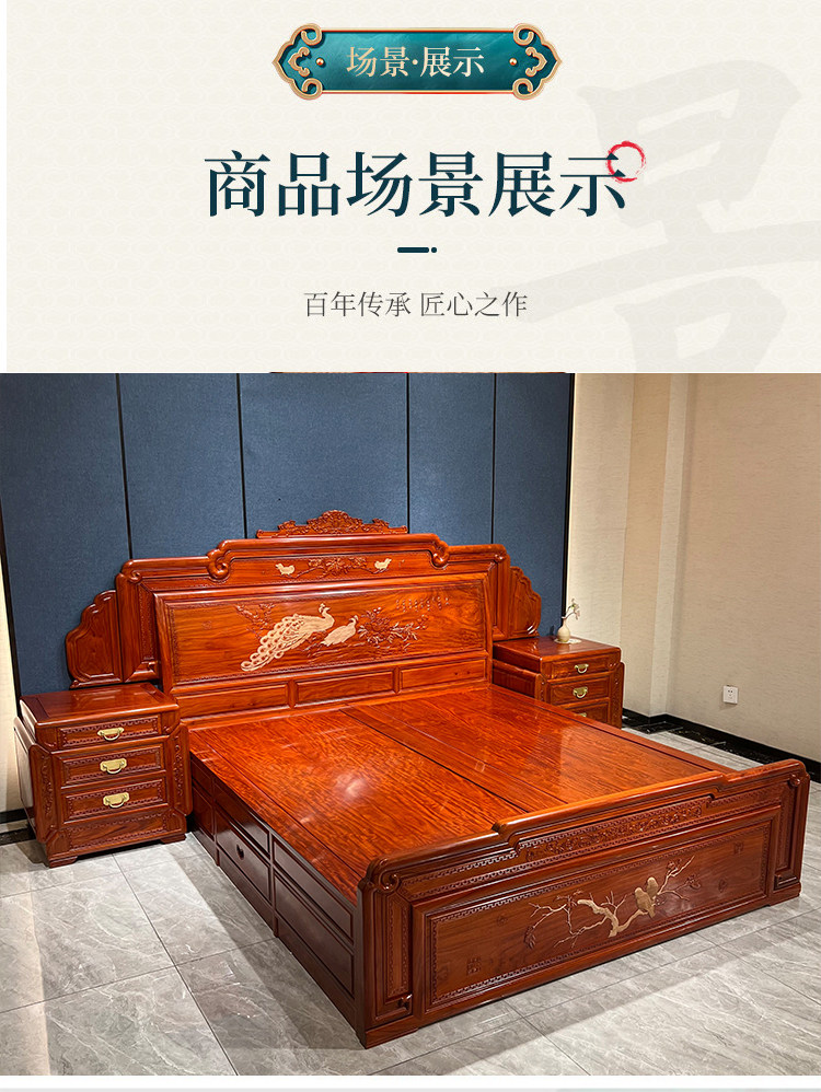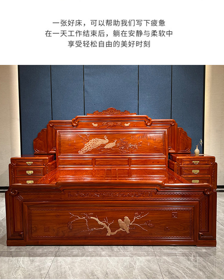 • 商品名称:国标红木双人床花梨木大果紫檀大床中式卧室家具1.8米实木大床
