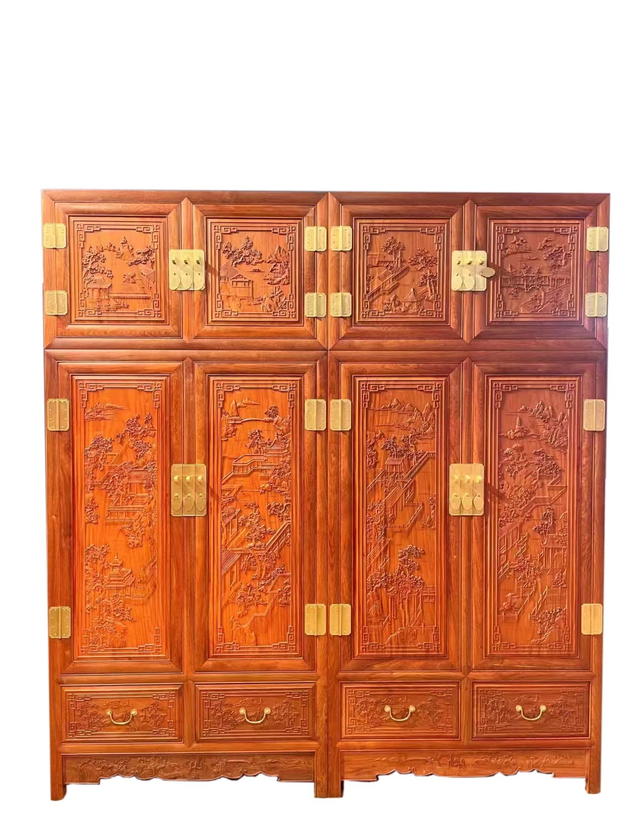 • 商品名称:缅甸花梨木新中式衣柜红木家具实木大气顶箱柜四门卧室收纳储物柜
