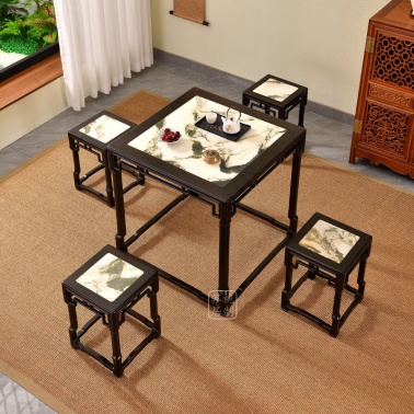 • 商品名称:紫光檀云石面四方桌红木新中式家具正方形茶桌一桌四凳