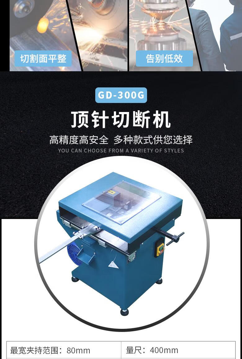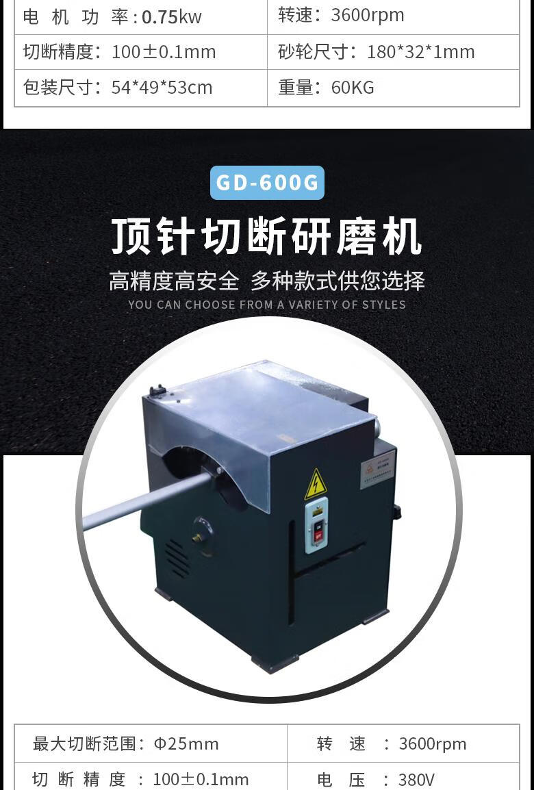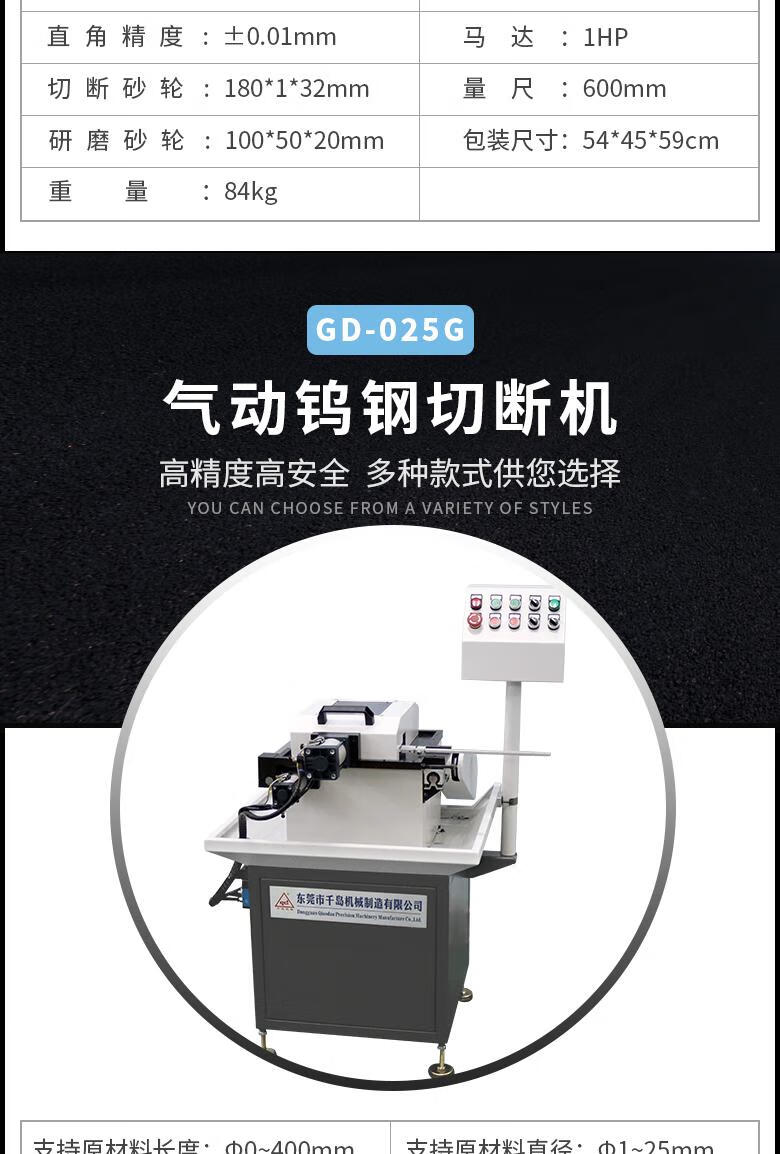 • 商品名称:顶针切断机顶针切断研磨机圆棒铝件切断研磨一体机气动钨钢切断机 气动钨钢切断机380V400mm卡尺GD