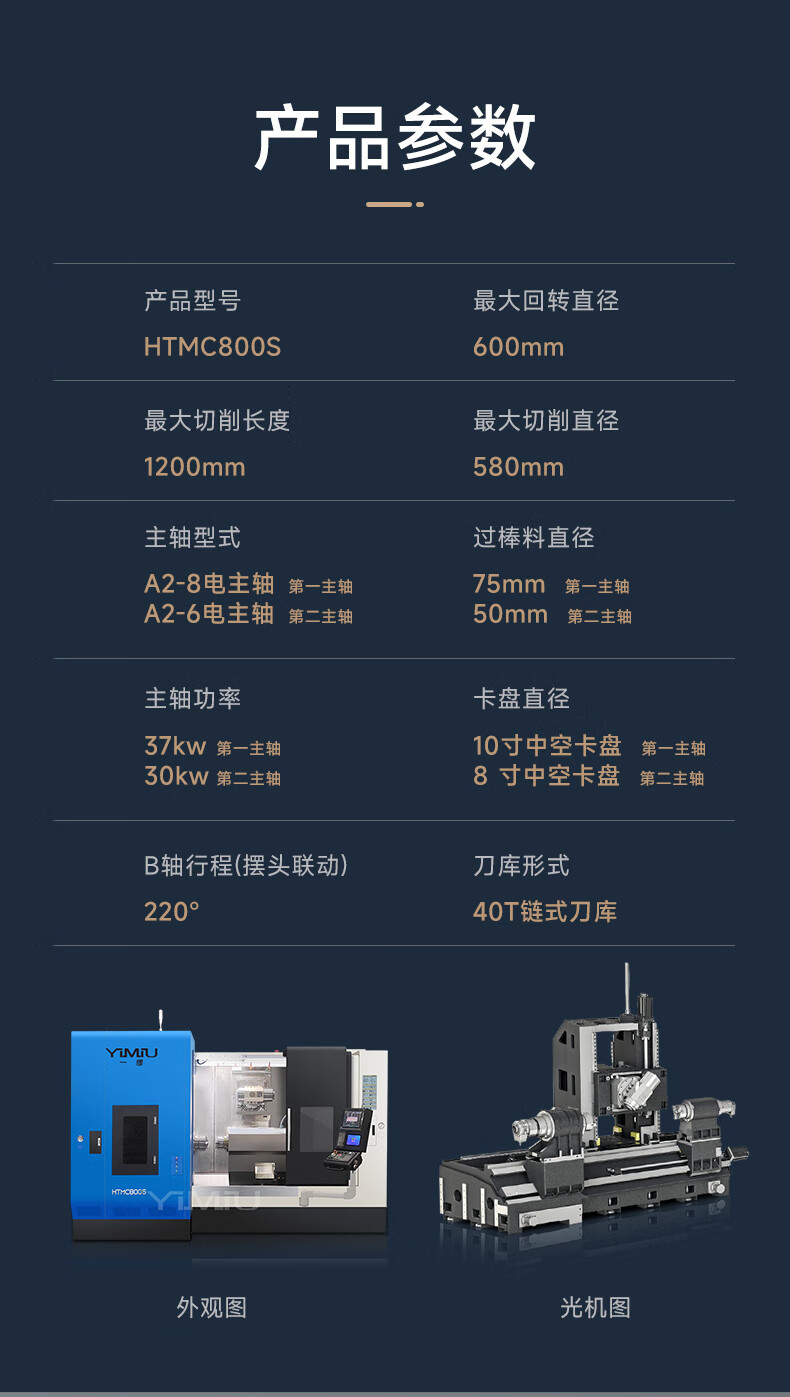 • 商品名称:车铣复合机床HTM800S五轴摆头大型数控车床高精度高效率复杂加工 HTM800S咨询客服送3.5万配件大礼包