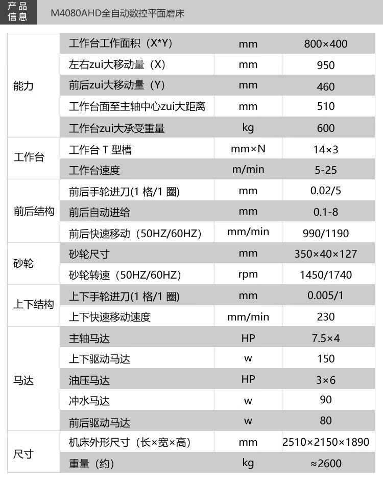 • 商品名称:魅英高精密M4080AHD液压自动三轴数控全自动平面磨床 M4080AHD数控平面磨床三轴全自动