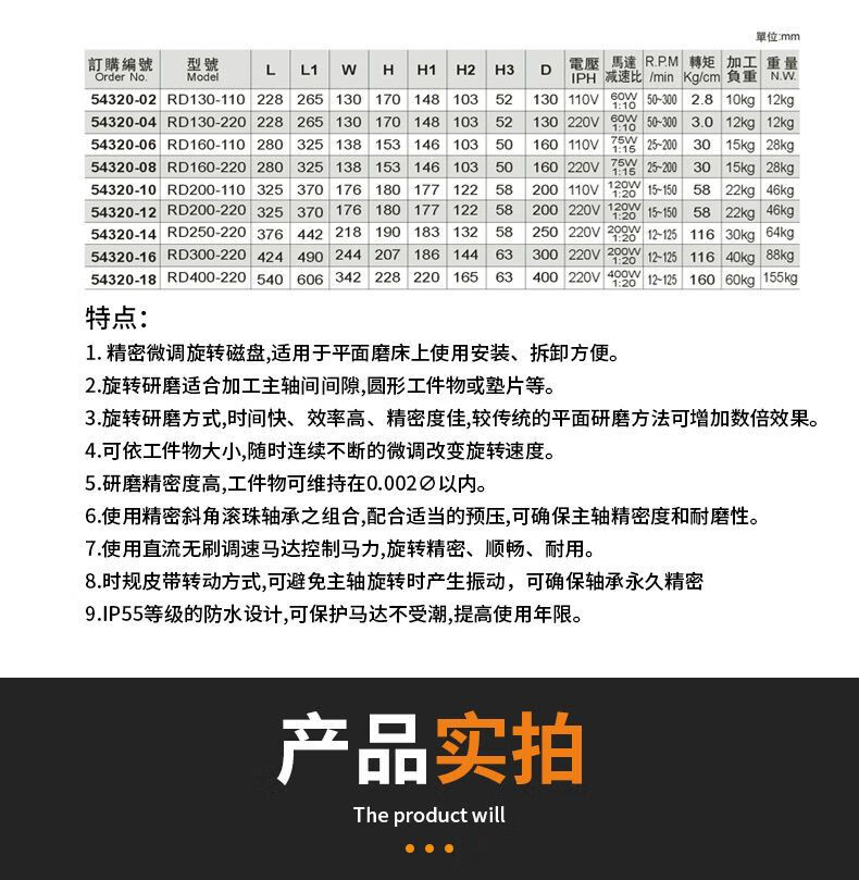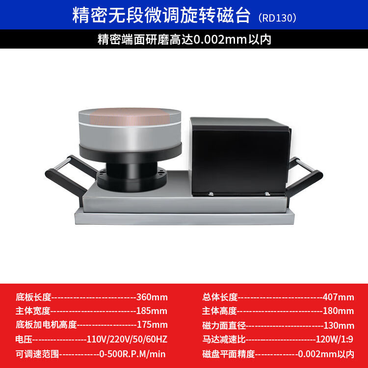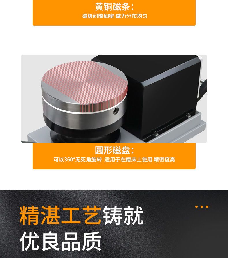 • 商品名称:迅爵旋转磁台高精密机械可调速圆磁盘磨床电动磁吸机械强磁力磁性强力 红铜磁盘130mm