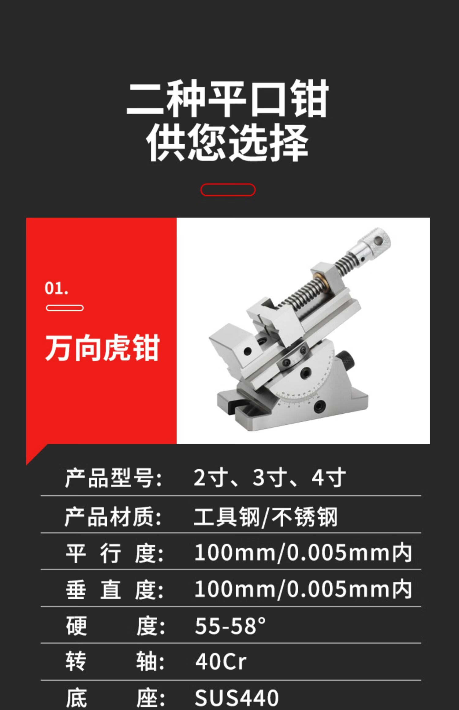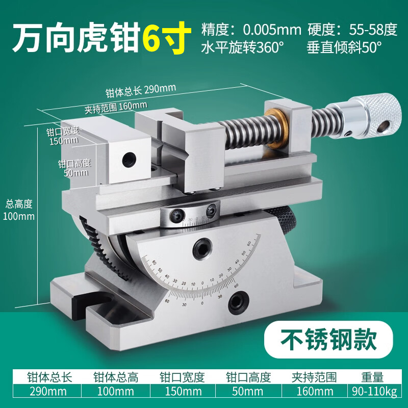 • 商品名称:米逡精密万向老虎钳360度旋转可角度倾斜正弦平口钳磨床手动万力批士 6寸万向平口钳【不锈钢材质】